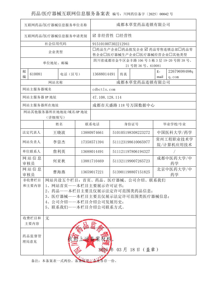 成都本草堂藥品連鎖有限公司 技術(shù)支持:成都七彩云和科技有限公司